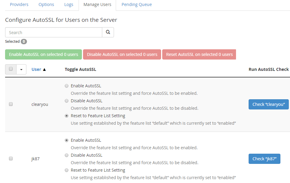 5- يمكنك أيضًا تغيير إعدادات AutoSSL الفردية لكل حساب cPanel من إدارة المستخدمين من “ Manage Users“